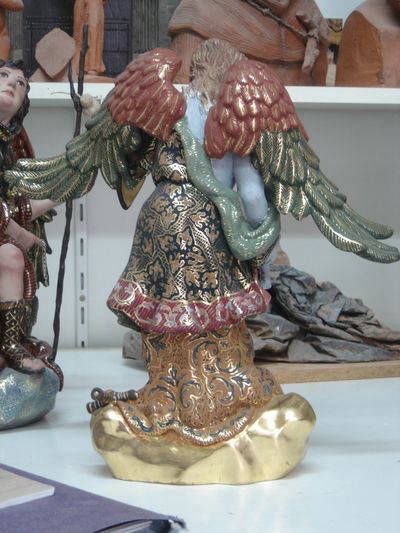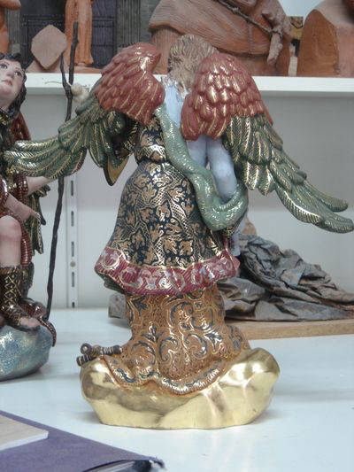 Cuando la figura esta terminada es necesario cocer la pieza en el horno para lo que previamente hay que ahuecar la pieza. Para el proceso de ahuecado se secciona la figura por el lugar que más convenga con un sedal de pesca o un fino hilo de metal, Tras haber dividido la figura en piezas se saca el barro de dentro de la figura con una herramienta que se llama ahuecador, después se vuelve a pegar las piezas que se han cortado aplicando en las juntas una mezcla de barro y agua que se llama barbotina y se realiza una costura de manera que no se note por donde se hizo el corte.