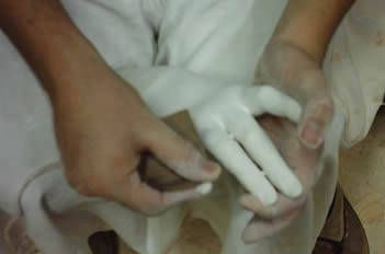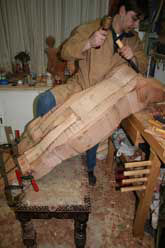 En ocasiones se utiliza también la talla en directo, sobre todo en los cuerpos. Para este proceso nos saltaríamos la saca de puntos y desde “el embón” de madera se le iría dando forma a la imagen a base de golpe de gubia.