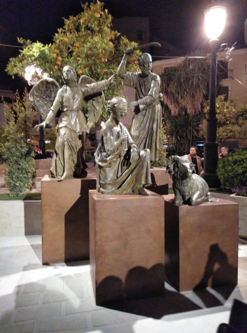 Monumento en bronce con peanas en acero corten ubicado en la Plaza 28 de Febrero del pueblo de Alcaudete (Jaen)