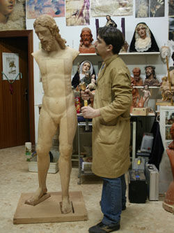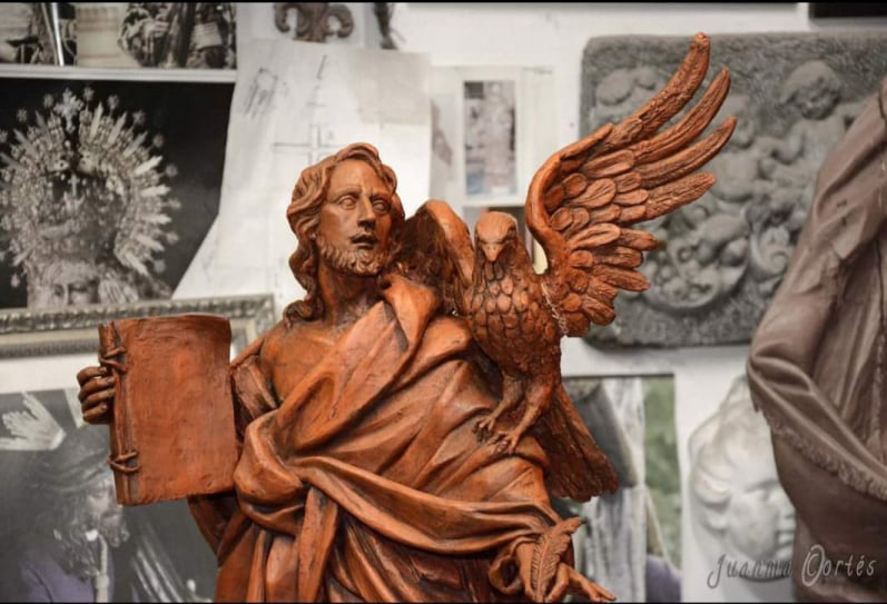 Entre gubias y pinceles, olor a cedro e incienso, se va dando forma, va naciendo la Imagen, la Obra.
